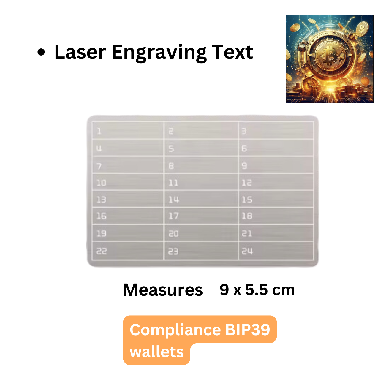 Crypto Seed Phrase Wallet 24 words Stainless Steel Compatible BIP39